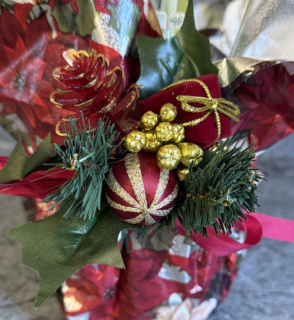 Single Amaryllis plant packaged in colorful paper with a bow